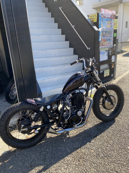 SR400ご成約です!ワンオフタンク、フレーム加工、別体オイルタンク、メガホンマフラー、18インチダートマン、ロンスイ他ワンオフ多数のナローチョッパー!O様この度は誠にありがとうございました。